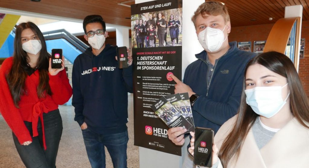 Lange vor dem Aktionszeitraum im Juli haben haben Tessa Braun, Furkan Medet, Lehrer Benjamin Kögler und Ayse Senyer (siehe Foto, v.l.) die App „Ein Held für die Welt“ auf ihr Smartphone geladen.