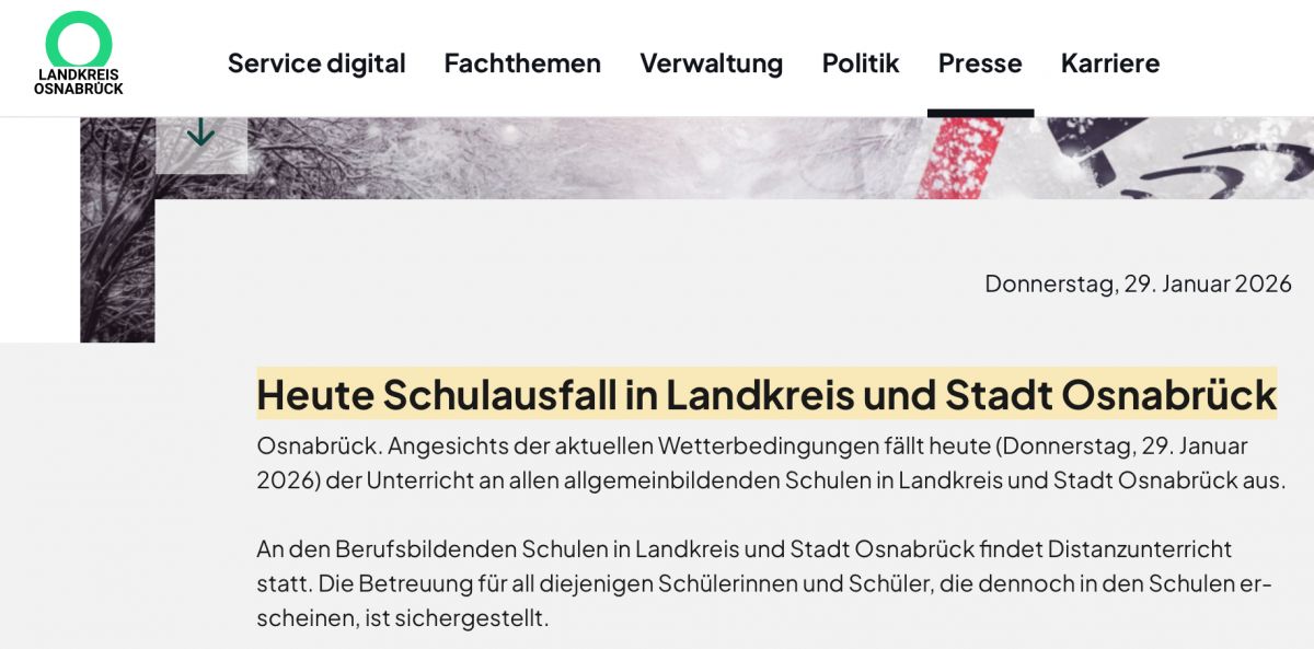 KATWARN meldete heute früh zum dritten Mal, dass die Schule im Landkreis Osnabrück aufgrund von Eis und Schnee ausfallen muss.