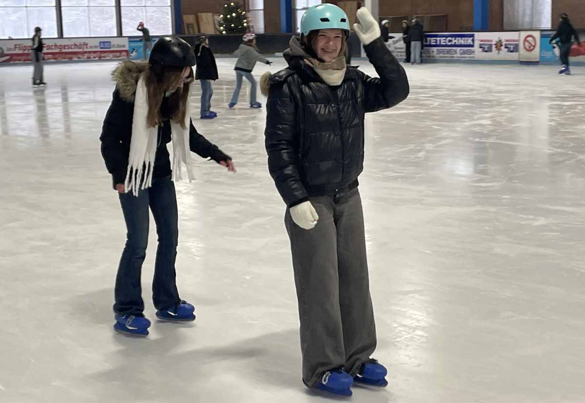Das Winterwetter sorgte zuletzt mehrfach für Schulausfall. Jetzt durften alle Achtklässler ganz offiziell aufs glatte Eis: zum Schlittschuhlaufen im Osnabrücker „Eissportcenter“.